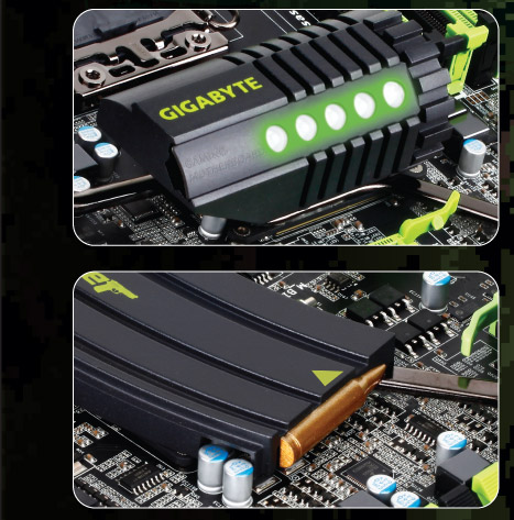 Системные платы GIGABYTE серии G1-Killer оснащены новой системой охлаждения на базе тепловых трубок. Она превосходно отводит тепло, а эффективность системы можно оценить даже по ее внешнему виду. Выбранная схема эффективно отводит тепло от критичных зон (в частности, зона ЦП, VRM) и быстро его рассеивает. Таким образом, все изделия серии G1-Killer остаются прохладными даже во время жестоких сражений. Разрабатывая дизайн системы охлаждения, инженеры GIGABYTE позаимствовали некоторые элементы у настоящего оружия. Например, радиаторы Locked and Loaded по форме напоминающие магазин для патронов, имеют гофрированную поверхность, которая обеспечивает максимально эффективное рассеивание тепла. |