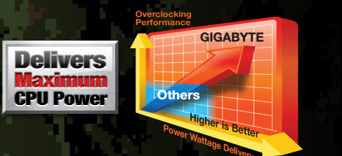 | Согласно спецификации Ultra Durable™3 изделия GIGABYTE выполнены на базе печатных плат с удвоенной толщиной слоя меди в цепях питания и заземления. Кроме того, на них устанавливаются энергоэффективные дроссели с ферритовым сердечником, полевые транзисторы с низким сопротивлением канала и японские твердотельные конденсаторы (срок службы 50 тыс. час). Принятые меры помогают снизить энергопотребление и нагрев компонентов. |