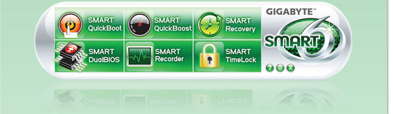 bir PC sistem yönetimi sağlayan 6 yenilikçi yazılım sunar. Smart 6, sistem performansını hızlandırmanıza, ön yükleme süresini azaltmanıza, güvenli bir platform yönetmenize ve yalnızca mouse tuşunu tıklayarak önceki sistem ayarlarını kolaylıkla geri yüklemenize olanak tanır. |